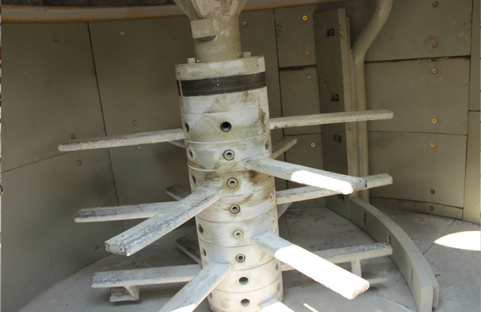 攪拌裝置:物料槽與轉(zhuǎn)子一起旋轉(zhuǎn),與此同時(shí),使在離心位置上同方向旋轉(zhuǎn)的攪拌器產(chǎn)生可以剪斷物料的力量,在復(fù)雜的流動(dòng)中形成的速度差。刮板葉片不斷地剝離那些還留在槽底和邊緣的物料送至攪拌器,實(shí)現(xiàn)了物料的佳均勻性攪拌效果。